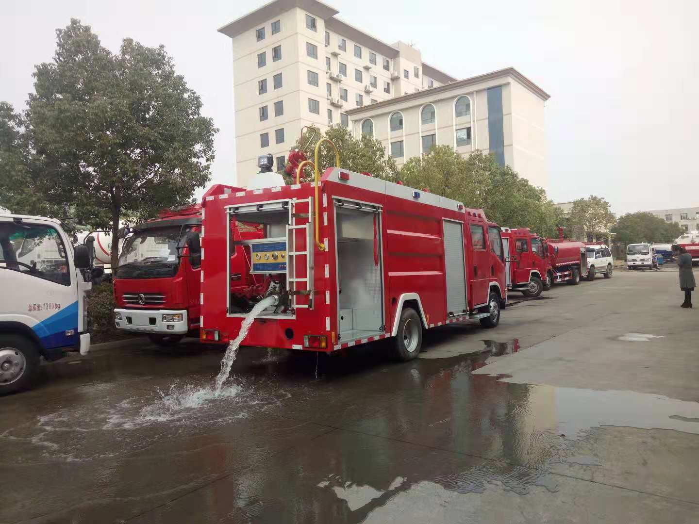 ![]() | 五十鈴遠程高壓水罐消防車,在慶鈴原裝二類底盤上 改裝而成,載液量2.5-3噸,配備高壓柱塞泵,具有機 動性好,操作方便,射程遠,供水距離遠等特點,適用于森林消防等場所. |