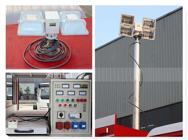 升降照明系統(tǒng) 升降照明系統(tǒng),由發(fā)電機組供電,通過氣泵系統(tǒng) **桅桿升降,起升高度7.6M,主燈4*1000W使照 明范圍更廣、更遠。特別適用于夜間作業(yè)。 | ![]() | |